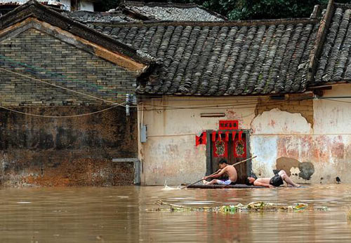 雨雪、大地震之後,是南方各省的大水災。「五十年一遇」或「百年一遇」的洪水,正擴大災害;水滔滔、波濤急,釀成災民四千多萬。